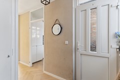 Aankomst bij de woning middels de verzorgde voortuin gelegen op het noordwesten. Binnenkomst in de hal van de woning met toilet, meterkast en voorraadkast.